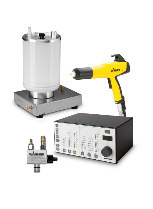 With its innovative functions, the Sprint 2 B manual system offers a wide range of options for excellent manual coating results. Powder is fed directly from the original box (alternatively from a 60-liter container).
